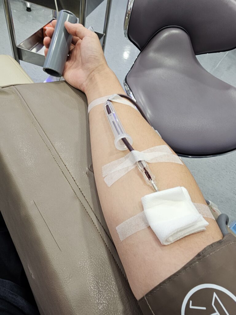 大量抽血時候,東西從自己血管流走的觸感還是很特別的。而且明顯感受到捐血站的服務態度和品質,都是對標私立醫院的,跟公立醫院非常消極的服務,是完全兩回事來的,也許是因爲獻血是政府有求於市民吧!