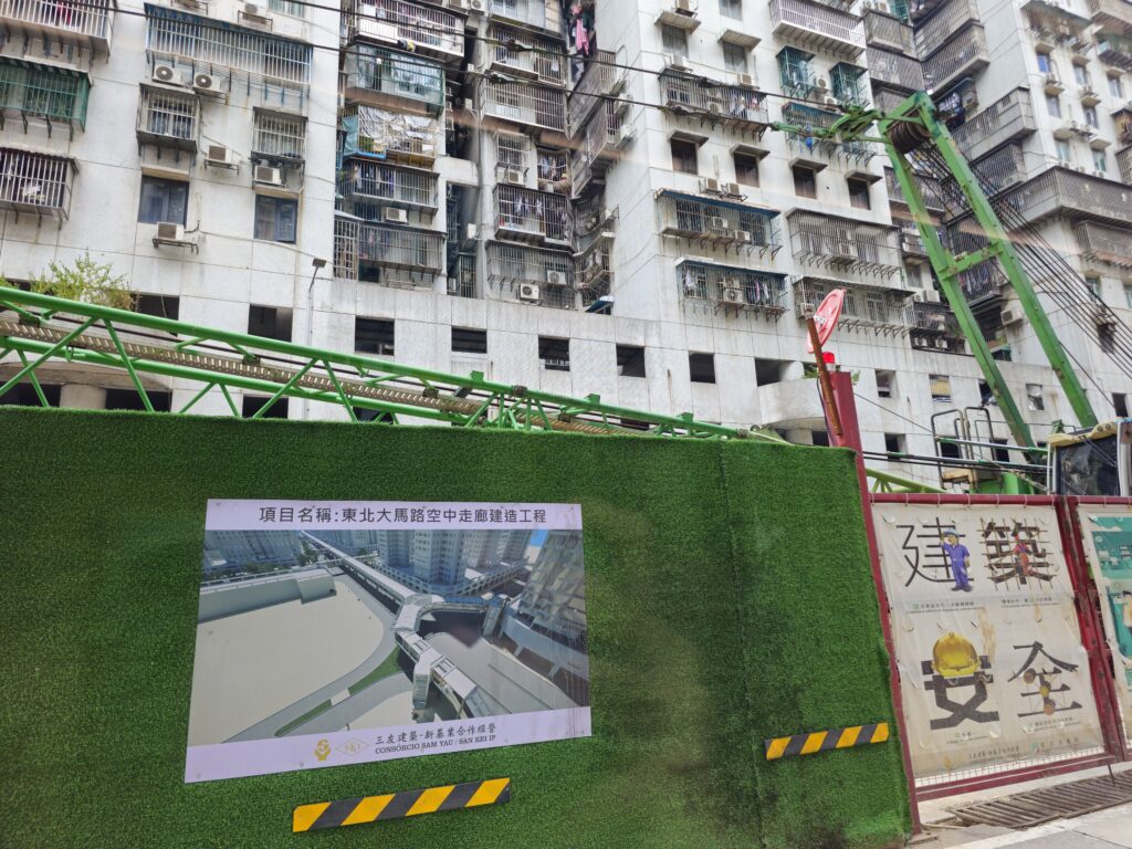 到了澳門,映入眼簾的就是在施工的東北大馬路空中走廊了。煉奶幾次離開澳門的最後一站都是在黑沙環這一帶的,所以對東北大馬路特別有印象。