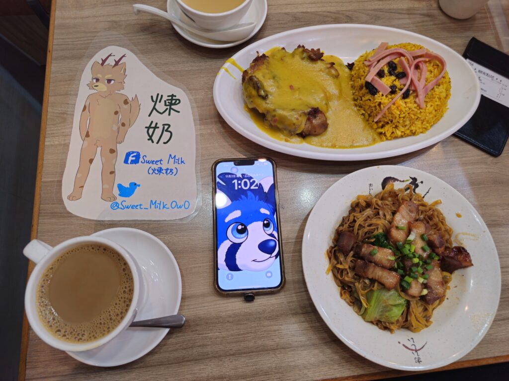 然後就去找阿果吃午餐了!這一餐煉奶吃嚤囉雞飯。似乎是澳門的茶餐廳普遍會提供的土生葡菜呢。煉奶在香港還沒有吃過。